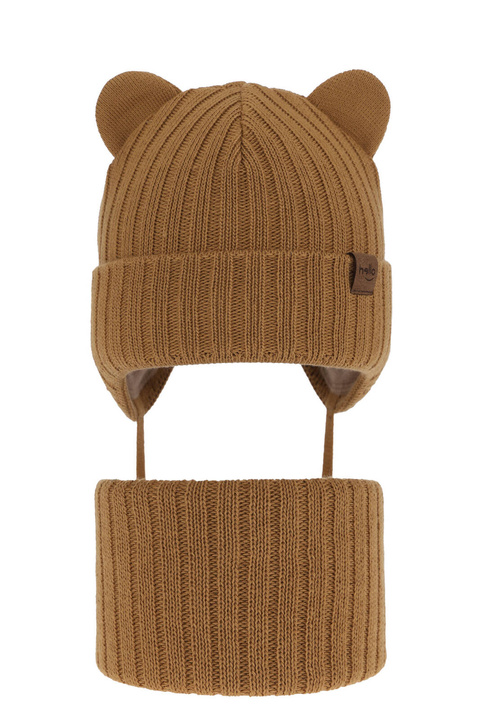 Pojke vinter set: mössa och halsduk, camel, med två pompommar, wiązany, Krispi