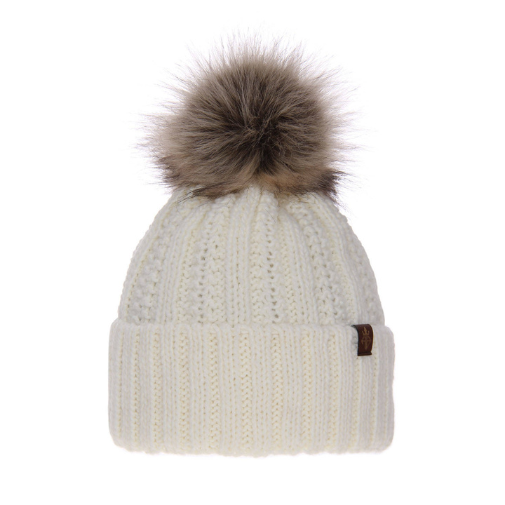 Dam vintermössa, miodowa, med pompom, med merinull, Satina
