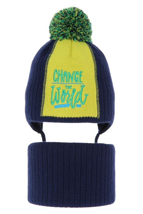 Pojke vinter set: mössa och tubhalsduk, blå, med knytband, Herb