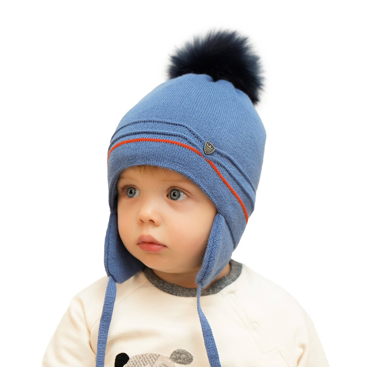 Pojke vinter set: mössa och tubhalsduk, blå, med pompom, med knytband, Burgund