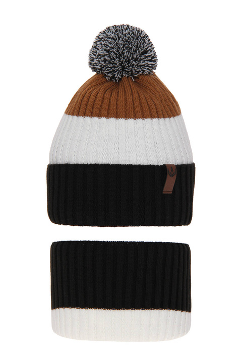 Flicka vinter set: mössa och tubhalsduk, camel, med pompom, wiązany Kornela