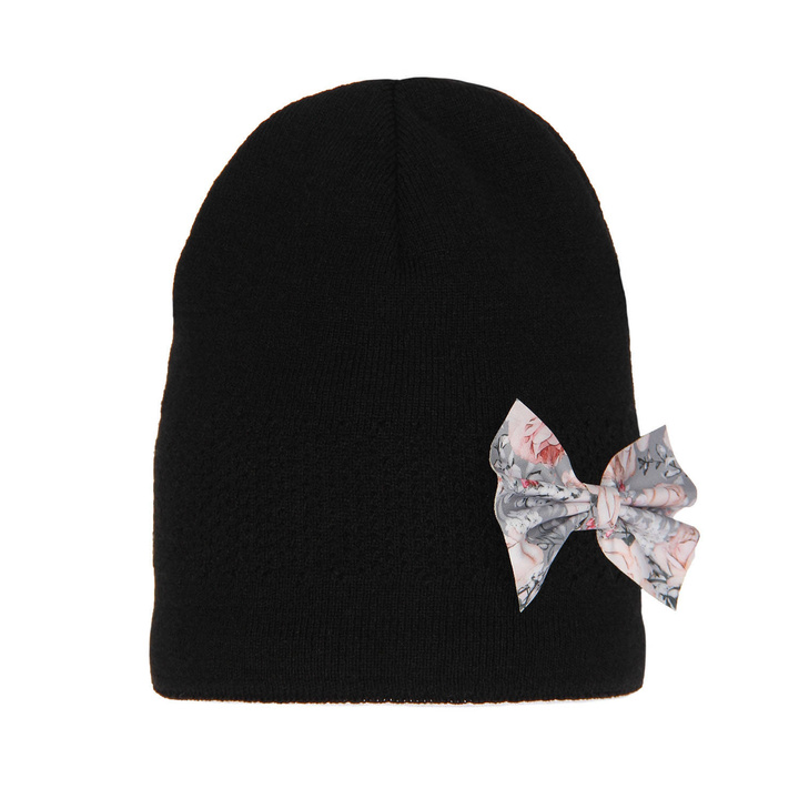 Flicka vintermössa, svart, ajour, ribbad, Kleo